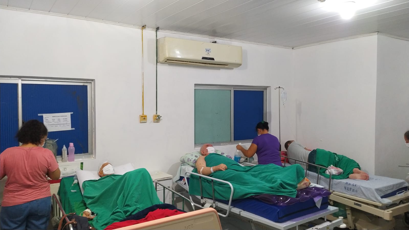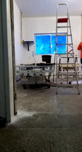 “Um dos rapazes viu que eu estava filmando e fechou a porta. Já falei para eles que estou inalando poeira, passando mal e nem ligam. Eu estou no corredor com outras pessoas e eles estão aí, lixando do nosso lado. Não tiraram ninguém daqui. Mesmo com a porta fechada, a poeira passa por baixo”, disse uma terceira paciente.