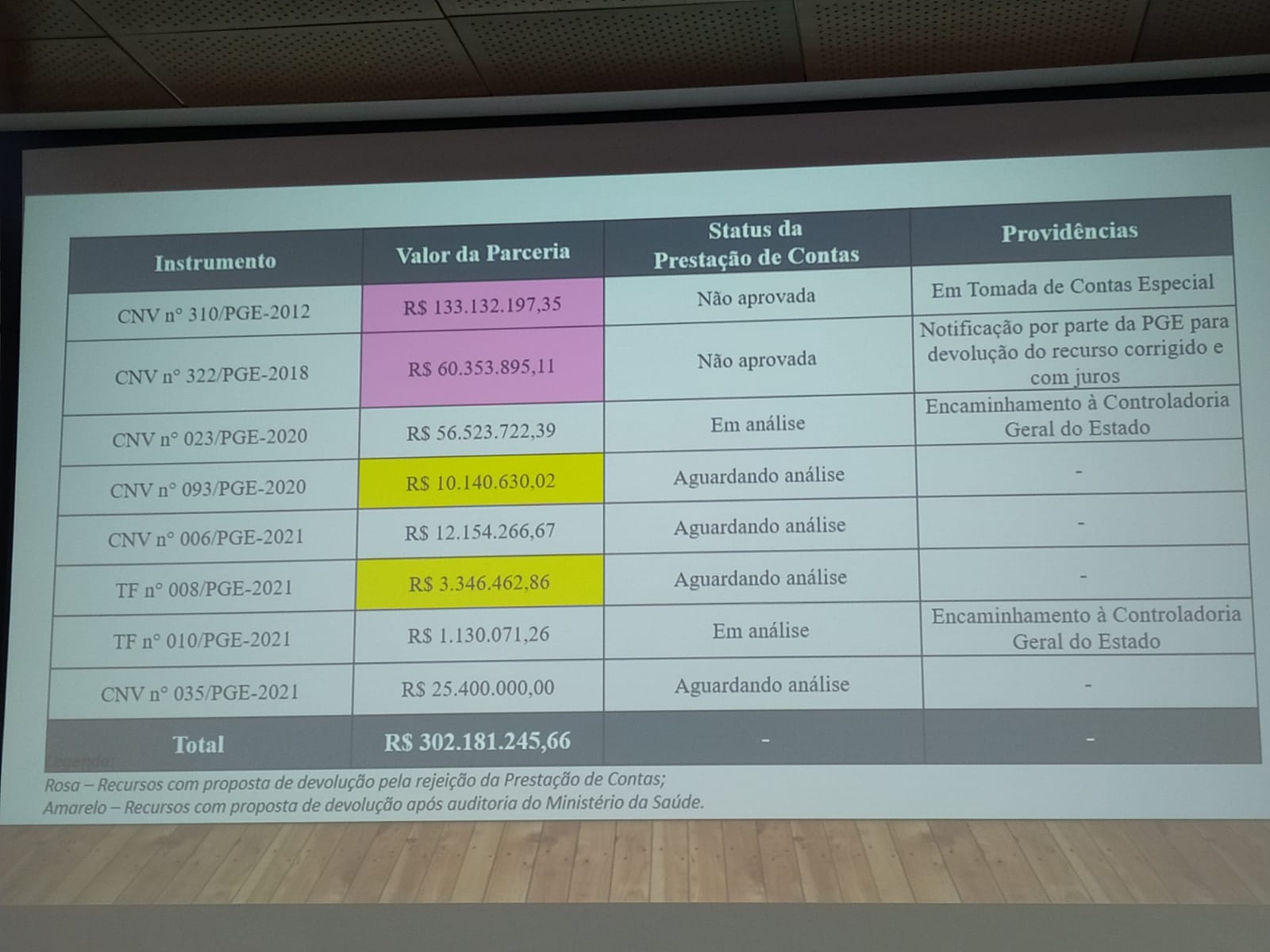 Na oportunidade foram mostradas diversas inconsistências, inclusive desde 2012, início da parceria entre o Executivo e a entidade (imagem 02).