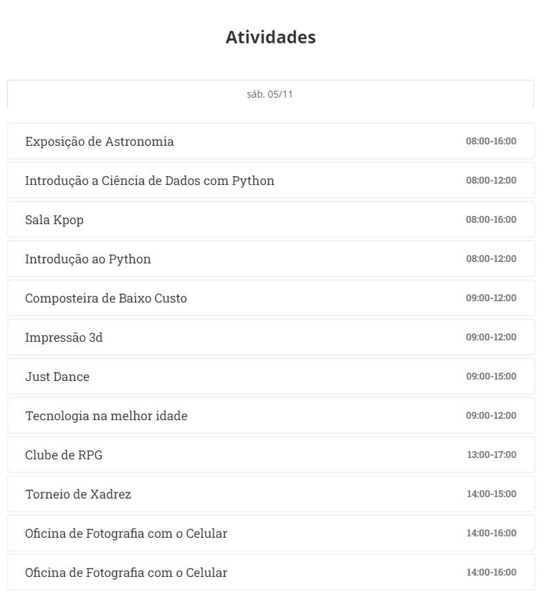 Em 2022 o evento acontece no dia 05 de novembro (sábado), contado com diversas atividades tais como: oficinas, apresentações e exposições.