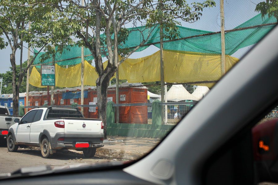 No entorno do campo da brigada, temos carro de som, trio elétrico, banheiros químicos dentro do campo, além de barracas de empresas. Questionado sobre quem autorizou e quem está pagando, o oficial não soube responder.