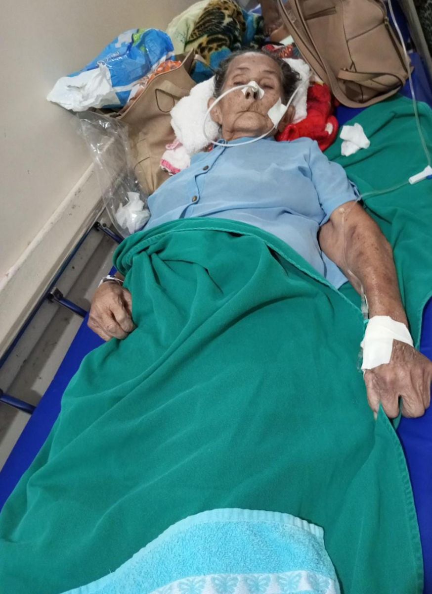 Segundo o filho Jorge Carvalho, desde segunda-feira (14), a mãe está nos corredores do Hospital e Pronto Socorro João Paulo II. Em um primeiro momento, ficou sentada por quase dois dias em uma cadeira de rodas, tomando soro.