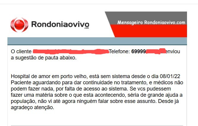 Recentemente, o Rondoniaovivo publicou a reportagem “Pacientes não conseguem marcar exames na carreta do Hospital de Amor”, onde mulheres interessadas em fazer exames de preventivos de Papanicolau e Mamografia não conseguiam agendar os procedimentos por meio do telefone 4009-9000.