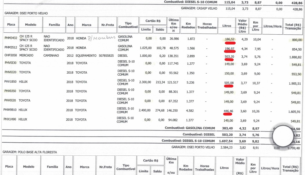 O documento ainda destaca também que foram abastecidos automóveis enviados para Manaus (Amazonas), recolhidos pela empresa em julho de 2020, conforme ofício repassado ao jornal eletrônico. Os cartões de crédito usados estariam em Porto Velho, sob responsabilidade do DSEI.