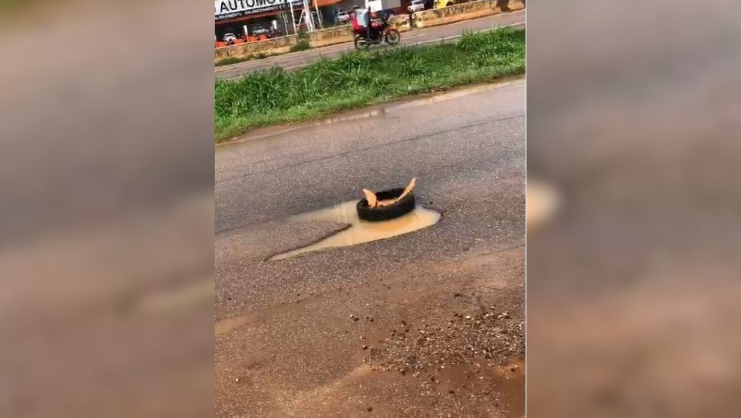 “Uns três carros já estouraram o pneu aqui. Muita gente não enxerga nessa época de chuva e já vê em cima. Os desavisados caem mesmo. Outros tem a sorte de passar ao lado”, falou um rapaz que fez imagens e enviou ao jornal eletrônico.