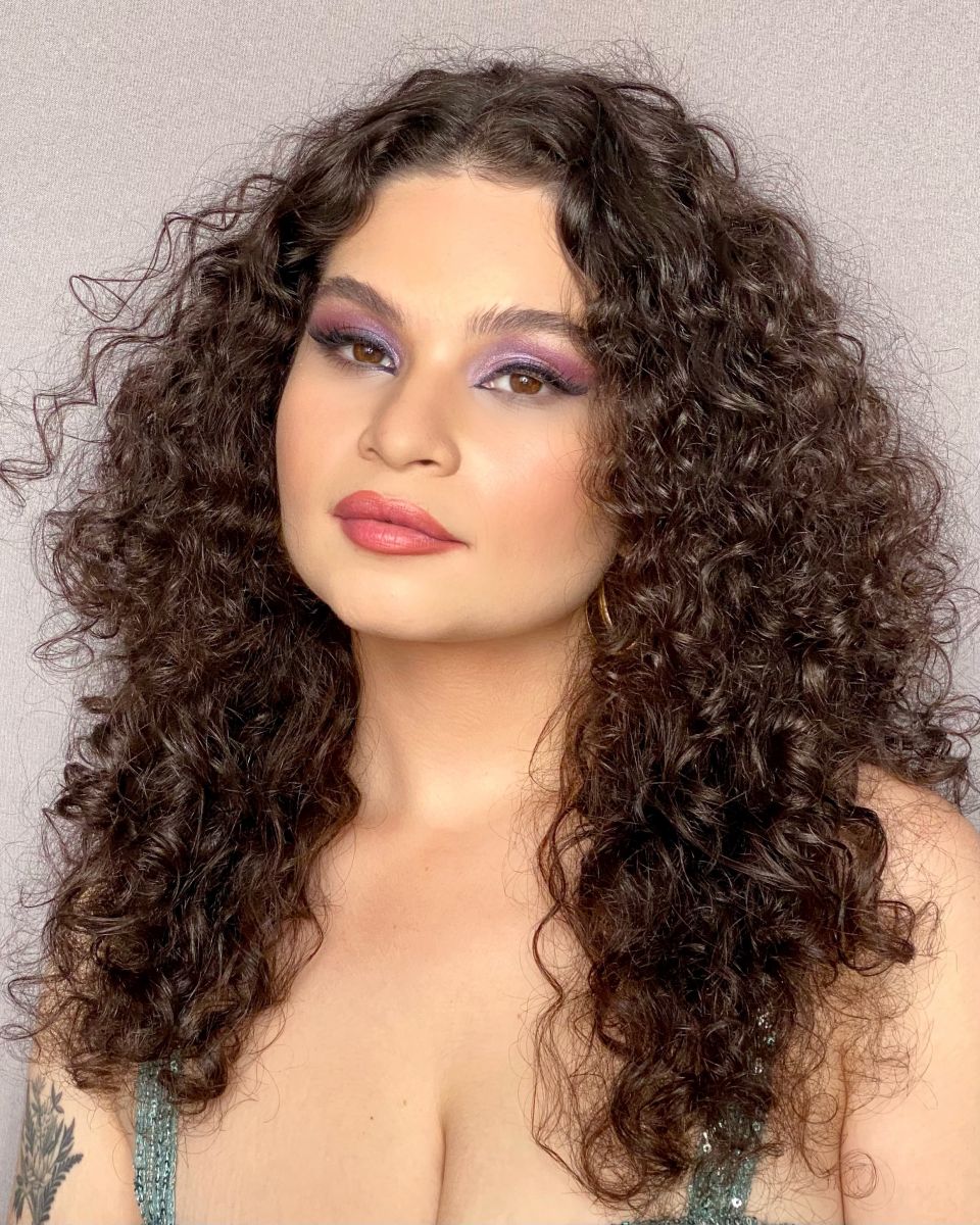 Depois do efeito dessa pele incrível é só se jogar na make dos olhos, e aqui vale tudo. Eu fiz um delineado preto bem poderoso, alongado e bem grosso. Depois usei várias cores de sombras da Palette Diamond, também de Make B. As cores são um verdadeiro espetáculo, cheias de brilho inspirado no diamante e com vários efeitos visuais. Misturei os tons de lavanda, roxo e lilás, que são cores supermodernas e na tendência de 2023.