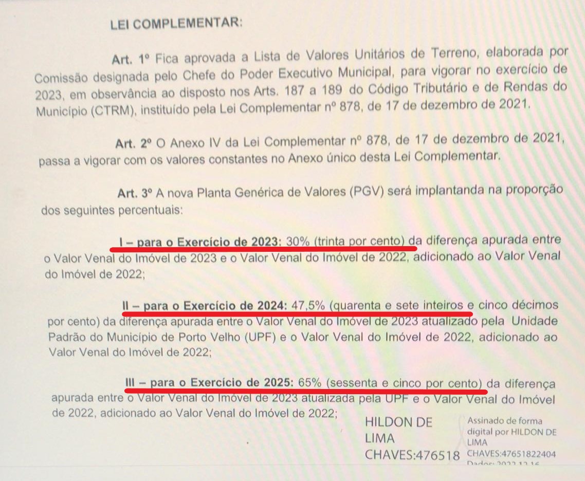 Em reportagem institucional publicada em seu portal, a Prefeitura de Porto Velho aponta que “neste ano, o município trabalha com uma nova base de cálculo. Após determinação do Tribunal de Contas do Estado de Rondônia (TCE-RO), a Prefeitura da capital atualizou a Planta Genérica de Valores (PGV)”.