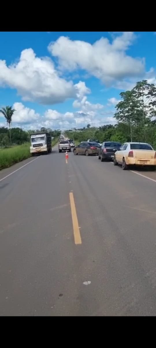 A BR-364, no trecho entre os distritos de Extrema e Vista Alegre do Abunã, em Porto Velho (RO) foi totalmente interditada neste domingo (19).