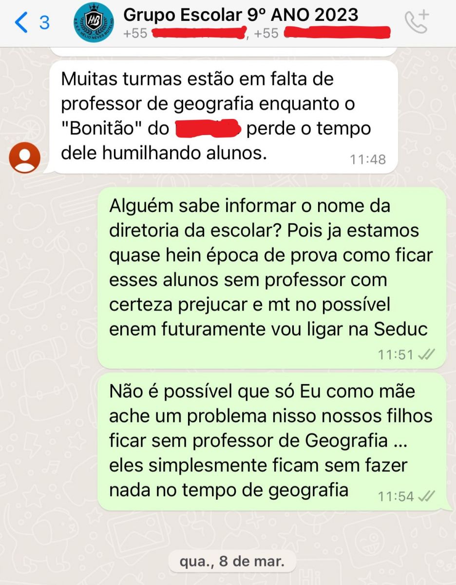 “Já estamos quase em época de provas. Como esses alunos ficam sem professor? Com certeza isso vai prejudicar muito em um possível ENEM. Vou ligar na Seduc. Não é possível que só eu como mãe, ache um problema nossos filhos ficarem sem professor de Geografia. Eles ficam simplesmente sem fazer nada no tempo de Geografia”, escreveu uma outra mãe.