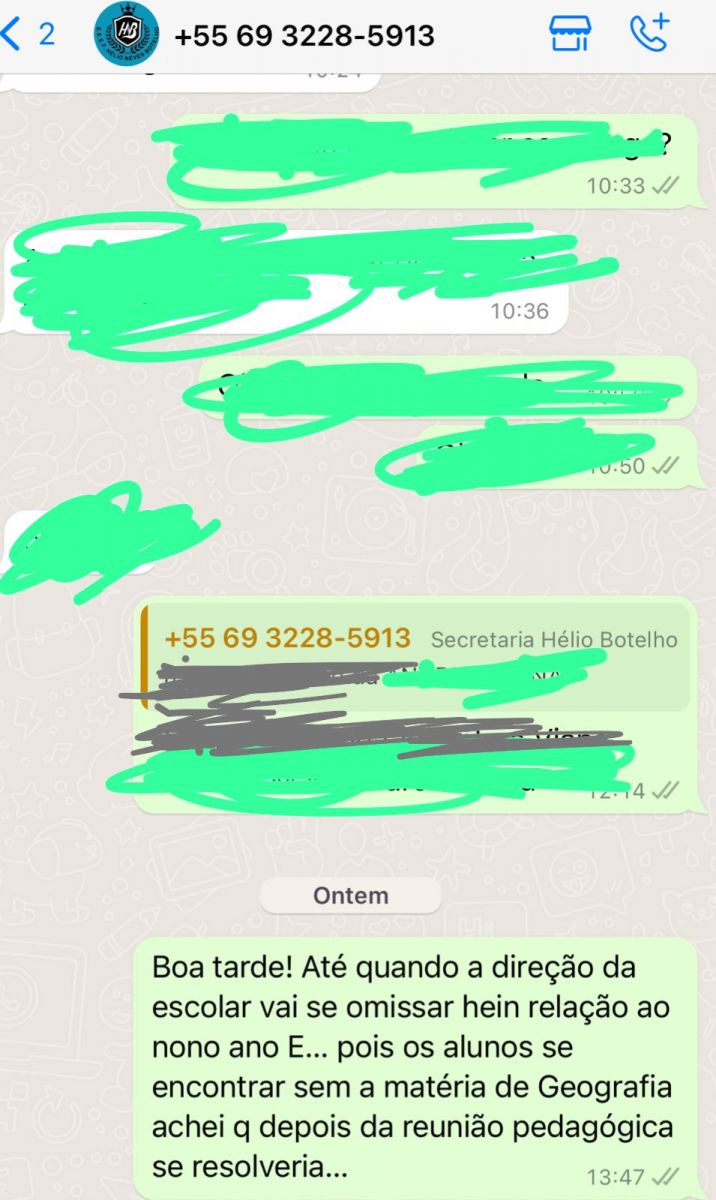 Prints reclamam da conduta da diretoria da Escola Hélio Neves Botelho - Reprodução de tela