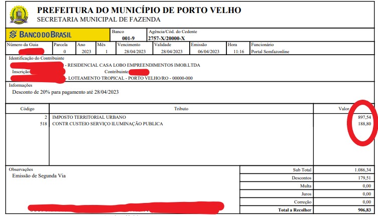 Contribuinte apresentou ao Rondoniaovivo custos deste ano com IPTU, que traz a contribuição por iluminação pública no lugar da taxa de lixo - Reprodução de tela