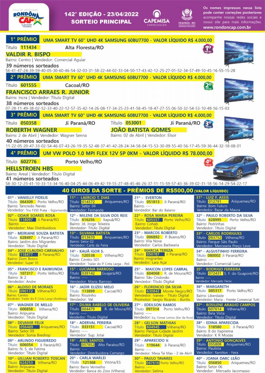 Quem ganha no Rondôncap você vê, vamos ver agora os melhores momentos do sorteio do ultimo domingo.