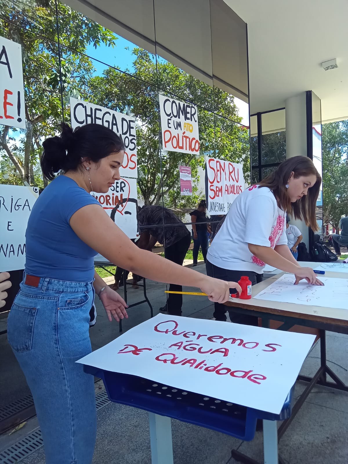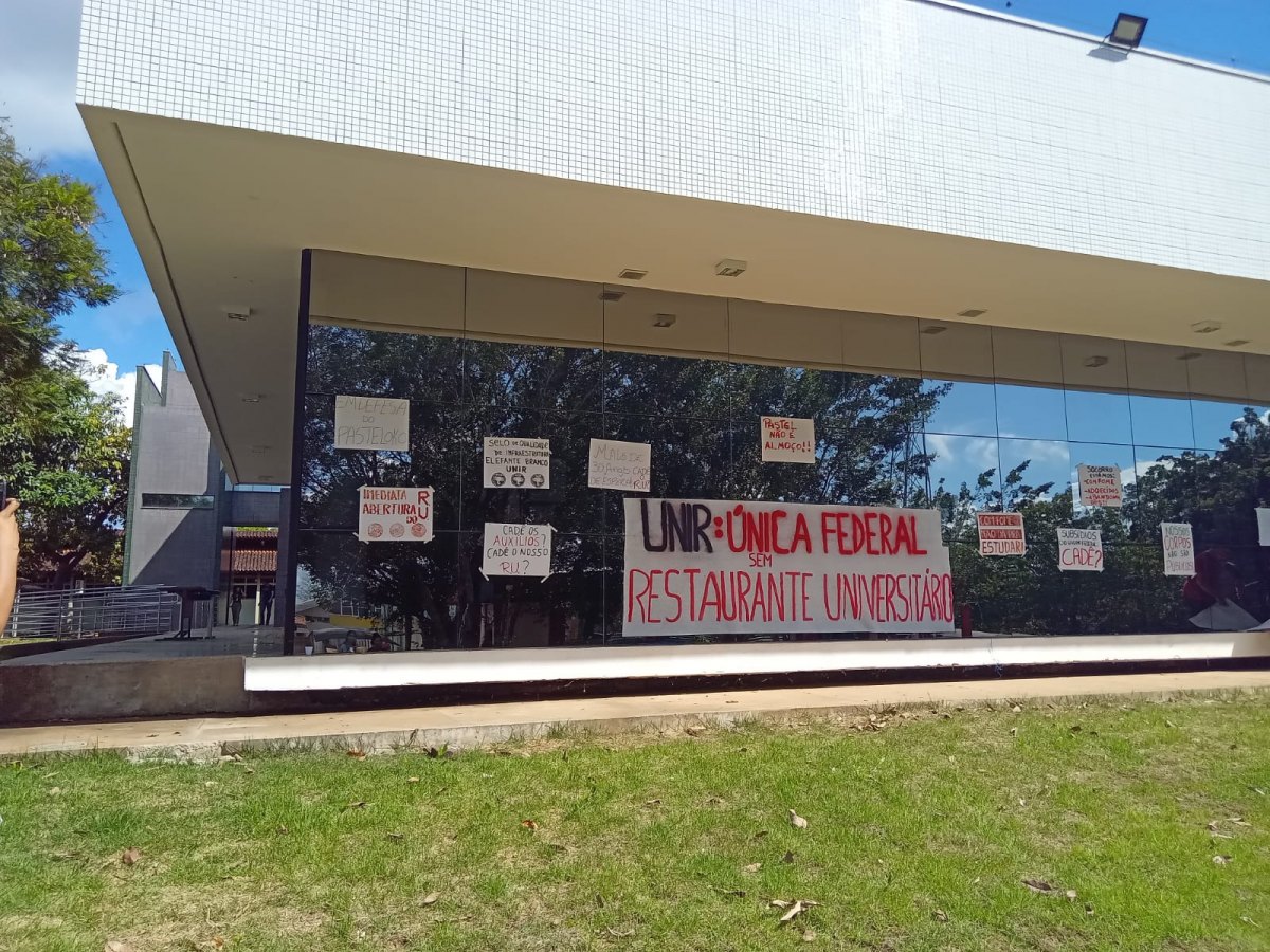 Estudantes da Universidade Federal de Rondônia (UNIR) fizeram um protesto, na tarde da quarta-feira (03), em frente às futuras instalações do Restaurante Universitário (RU) do campus localizado na BR-364, sentido Acre.