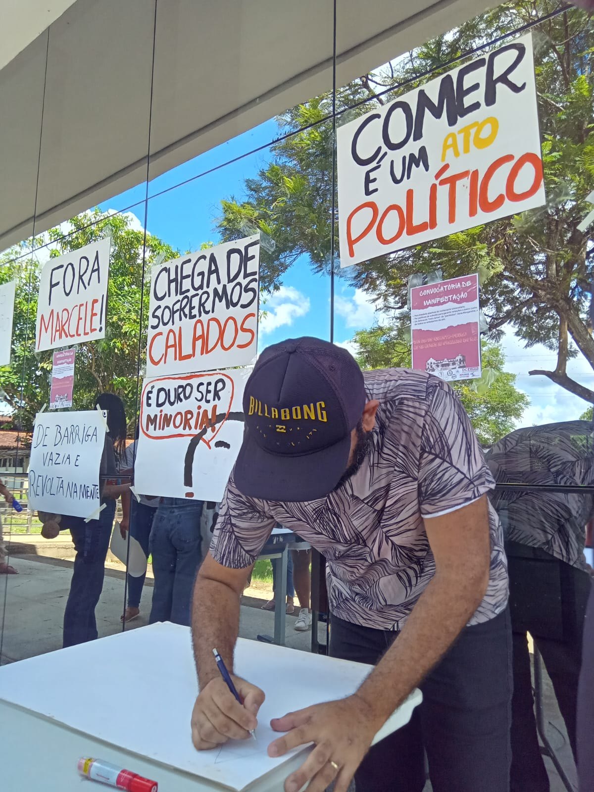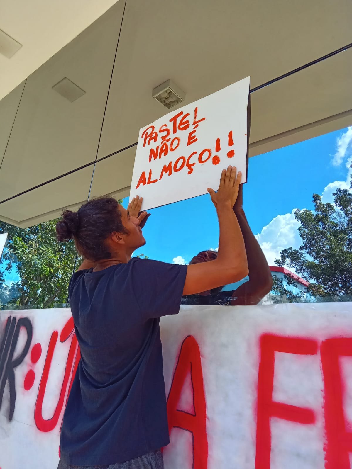 “A fome no Brasil é uma causa política e não é diferente quando ela chega a uma universidade federal. A universidade é um local de resistência, que por muitos anos, foi lugar de formar os filhos da burguesia. A falta de ônibus, a falta de RU, de segurança e o sucateamento da UNIR nada mais é do que o plano político para que somente a burguesia tenha acesso a educação e a ciência”, disse Vitória Carvalho, acadêmica de história, que participou do “marmitaço”.