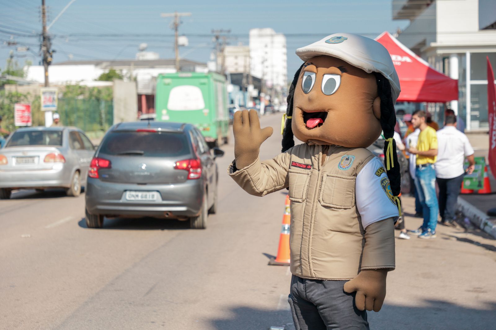 Os mascotes Semtranzinha e Semtranzinho também participaram da ação. Foto: Leandro Morais