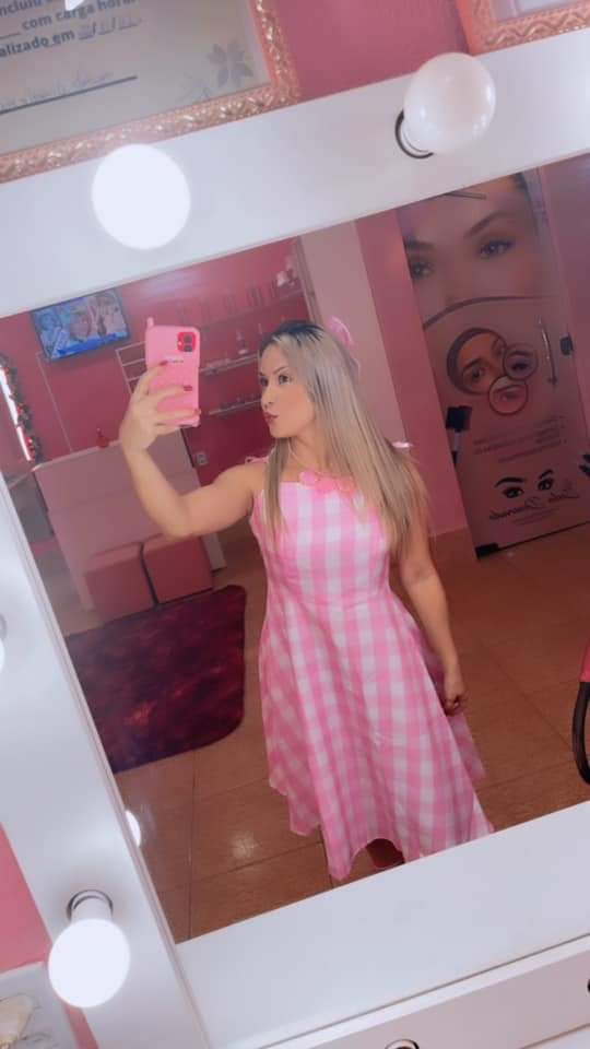 concurso para eleger o melhor look inspirado no novo filme da boneca. A decisão era dos internautas, e a internet escolheu o look rosa da Diênifer Dourado.