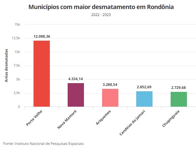 De acordo com o Inpe, aproximadamente 15.517,09 km² de terras foram desmatadas entre 2008 a 2022 em Rondônia. O maior registro de alertas ocorreu em 2021, com 1.641,78 km² de desmatamento. O estado concentra 12% do desmatamento ocorrido nas áreas protegidas da Amazônia Legal.