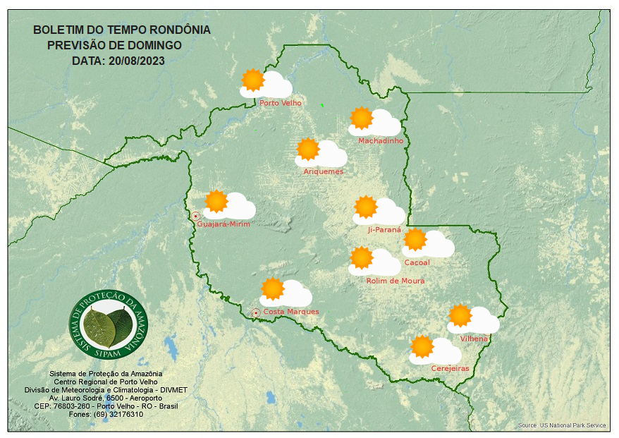A divisão de Meteorologia do Sistema de Proteção da Amazônia (Sipam) informa que Rondônia continuará com tempo firme com poucas nuvens e temperaturas altas em algumas localidades superando 36°C no domingo (20).