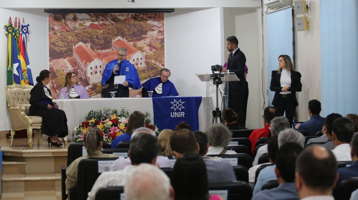 A Universidade Federal de Rondônia (UNIR) concedeu o título de Doutora Honoris Causa à pesquisadora Maria Del Pilar Gamarra Téllez, historiadora boliviana reconhecida por suas pesquisas localizadas na Amazônia. A honraria foi concedida em Sessão Solene do Conselho Superior Universitário (Consun), realizada presencialmente no Auditório da UNIR-Centro na manhã de terça-feira, dia 22 de agosto, e presidida pelo vice-reitor da UNIR, e presidente em exercício do Consun, professor Juliano Cedaro. A transmissão está disponível na íntegra no Canal da UNIR no Youtube.