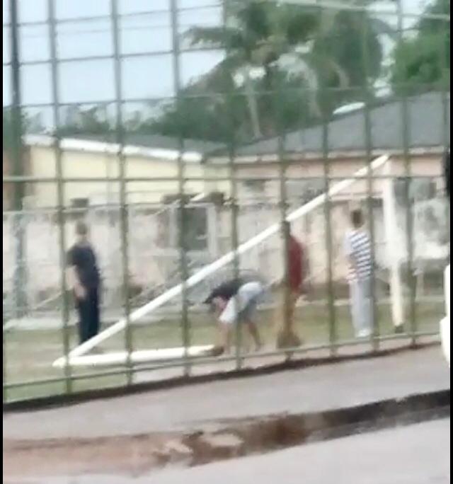 Famílias se deparam com trave do campo quebrada; segundo elas, responsáveis foram os organizadores do Arraiáleste, dois meses atrás - Reprodução de vídeo