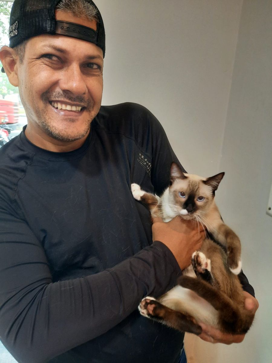 Oseias Coelho, morador do bairro Aeroclube, fez o cadastro na Sema e levou a sua gata Seda, da raça Siamês, para a avaliação e posterior castração. "Ela tem quatro anos, já temos dois filhotes em casa e chegou a hora de castrá-la. Não gostava de gatos, mas desde que fui morar com a minha esposa que a Seda virou o meu xodó e tenho muito cuidado com ela. É importante esse trabalho que a Prefeitura oferece e as pessoas devem aproveitar e castrar seus animais, pois temos muitos animais soltos nas ruas e isso não é bom", avaliou.