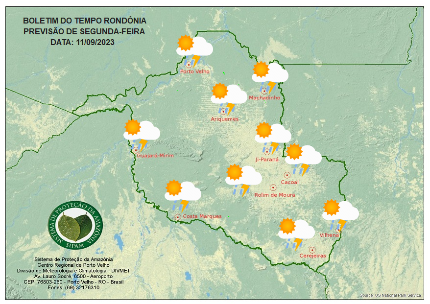 A divisão de Meteorologia do Sistema de Proteção da Amazônia (Sipam) informa que o tempo não muda neste começo de semana em Rondônia.