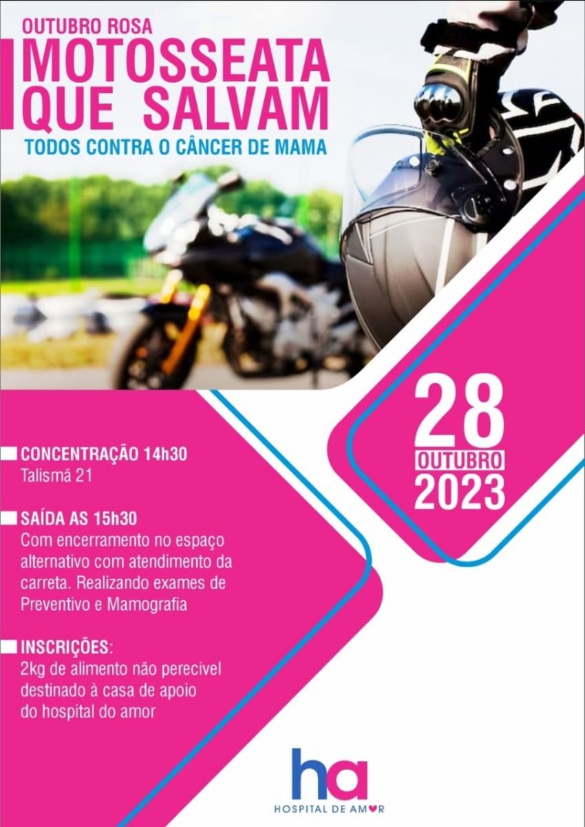 No próximo dia 28 de outubro, o Hospital de Amor da Amazônia promoverá um evento especial em Porto Velho, em apoio à campanha Outubro Rosa. Trata-se da "Motosseata", um emocionante encontro de motociclistas que tem como objetivo arrecadar fundos e conscientizar a população sobre a importância da prevenção e do diagnóstico precoce do câncer de mama.