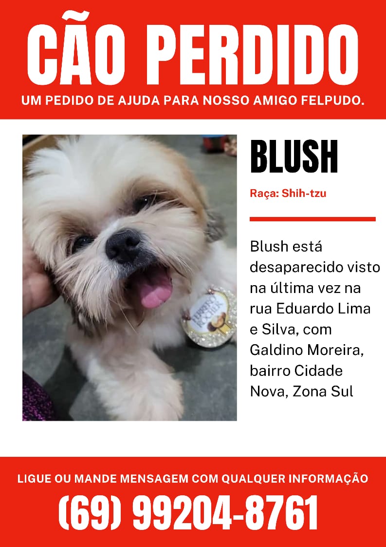 Blush foi visto pela última vez na rua Eduardo Lima e Silva