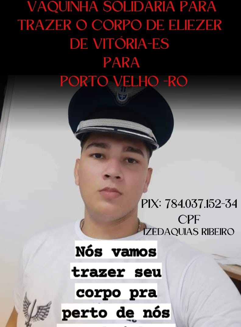 Os pais de Eliezer Acácio de Carvalho, de apenas 21 anos, estão passando por um momento de dor e desespero. Eles tentam trazer o corpo do filho de Vila Velha, no Espírito Santo, para ser sepultado em Porto Velho. Eliezer morreu no último domingo, dia 08.