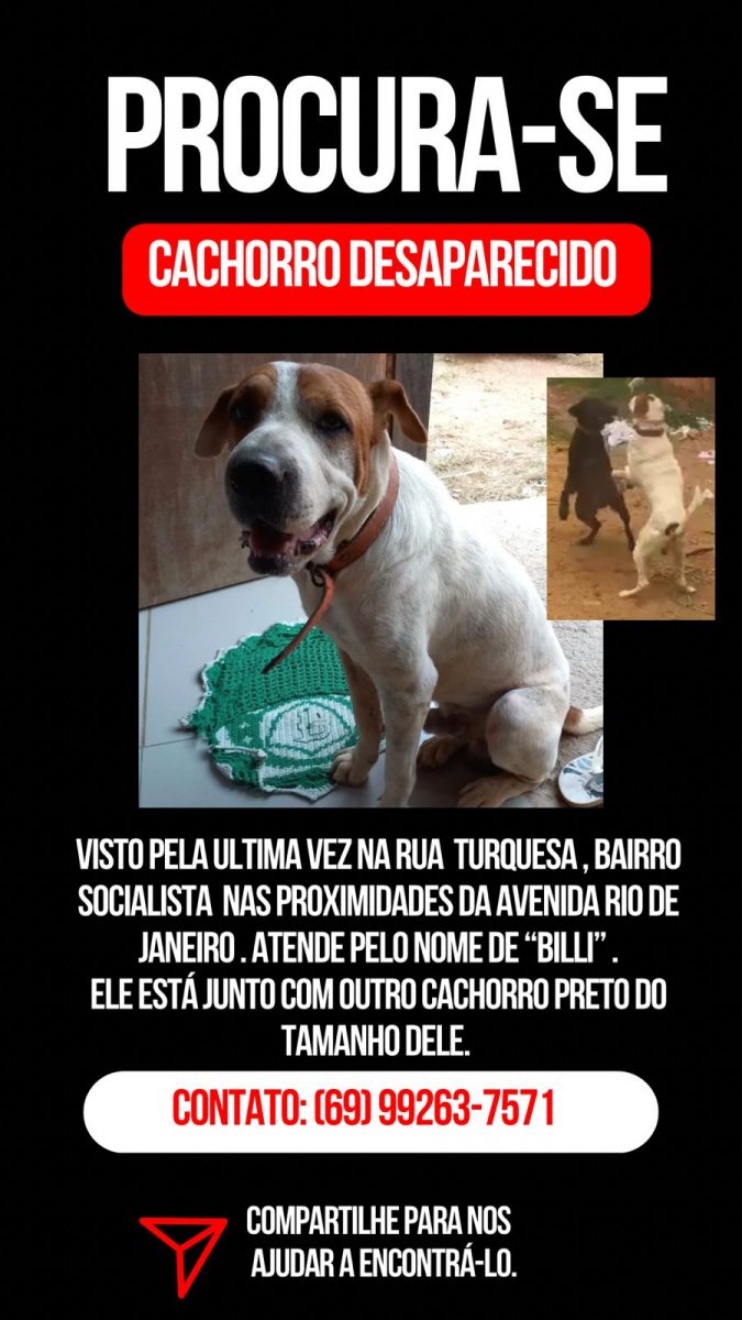 Animal foi visto pela ultima vez na Rua Turquesa, bairro Socialista