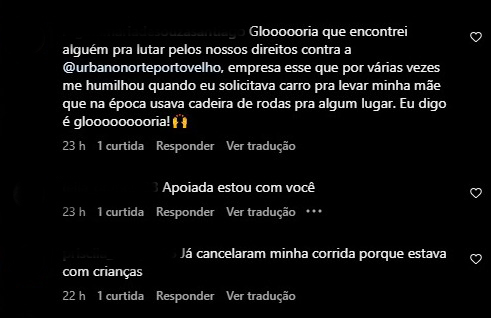 Mas a professora não ficou sozinha. Vargas e o Rondoniaovivo receberam dezenas de relatos similares e até piores de outros passageiros que foram destratados por motoristas de aplicativo, em especial da plataforma Urbano Norte.