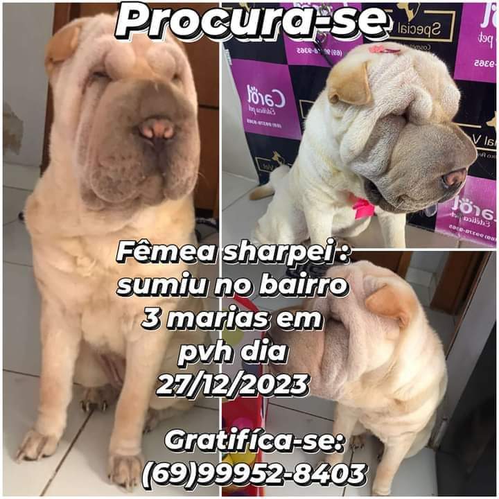 Luna desapareceu no bairro Três Marias; pessoas com qualquer informação sobre o paradeiro com a cachorra podem entrar em contato com Bruno via Whatsapp, no número (69) 9952-8403