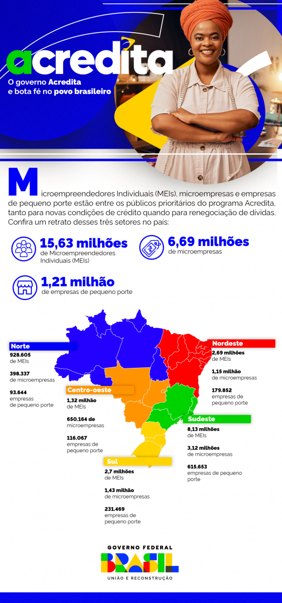 Rondônia tem atualmente 151.644 Microempreendedores Individuais (MEIs), microempresas e empresas de pequeno porte que podem ser beneficiados pelo Programa Acredita, lançado nesta segunda-feira (22/4) pelo Governo Federal. Entre as metas da iniciativa estão criar condições para ampliar o acesso a crédito, renegociar dívidas e garantir mais apoio a esses três setores da economia.