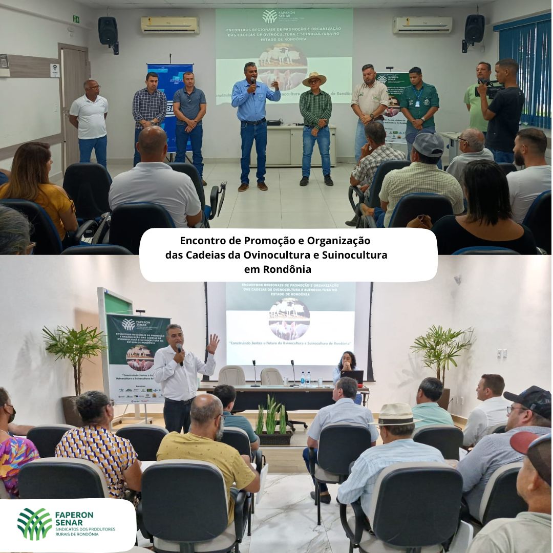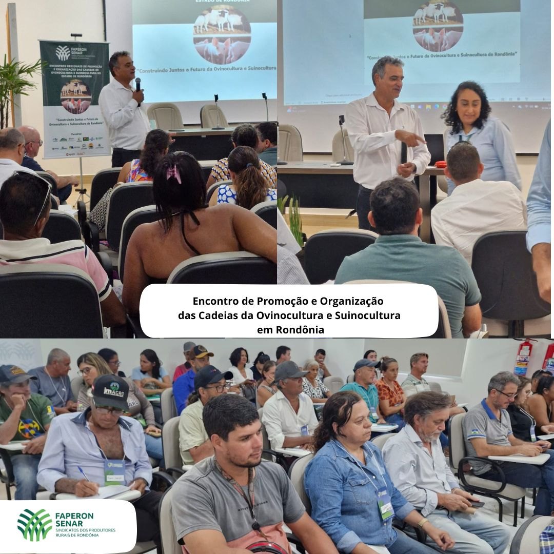 O Sistema Faperon, Senar, realizou o 1° Encontro de Promoção e Organização das Cadeias da Ovinocultura e Suinocultura em Rondônia. O evento, que reuniu mais de 60 pessoas, aconteceu na Federação de Agricultura e Pecuária do Estado de Rondônia, atraindo um público interessado no desenvolvimento e organização dessas importantes cadeias produtivas.