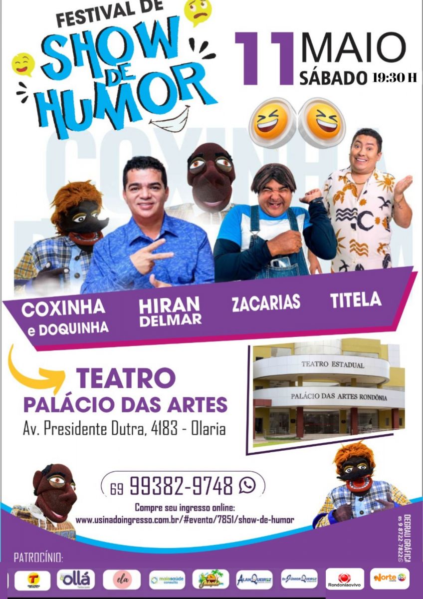 O Festival Show de Humor contará com a presença dos ícones nordestinos, fantoches Coxinha e Doquinha. Para além disso, Hiran Delmar, humorista criador da Patrulha do Coxinha, Zacarias e Titela vão fazer participações especiais no evento, que terá apresentação única no Teatro Palácio das Artes, localizado na Av. Presidente Dutra, 4183, Olaria.
