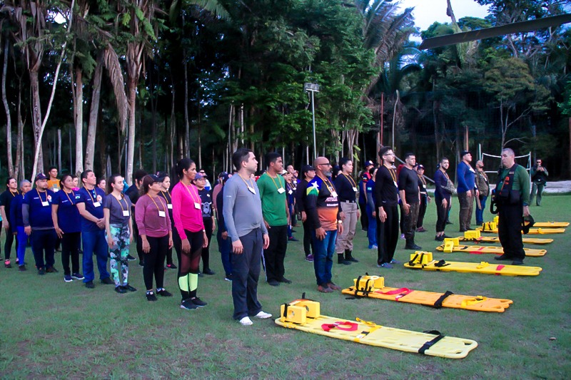 Os participantes também foram orientados sobre o uso adequado de equipamentos médicos e técnicas de transporte seguro de pacientes até o atendimento hospitalar, abordagem de aspectos relacionados à segurança pessoal, comunicação eficaz em situações de emergência e coordenação de equipe.