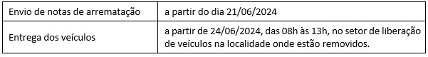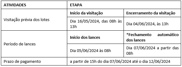 O leilão será realizado nos dias e horários, conforme cronograma abaixo: