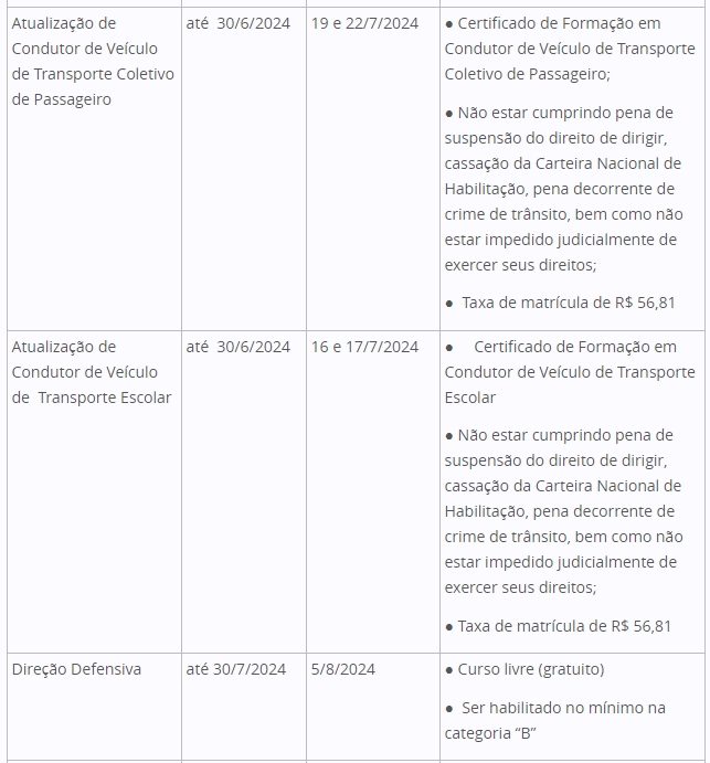 A diretora da EPTran, Juliana Jochims destaca que entre os cursos ofertados, motoristas podem fazer de forma gratuita o curso de Direção Defensiva, programado para acontecer em agosto, com matrículas ,abertas.