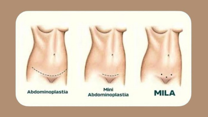 Ao contrário da abdominoplastia tradicional que deixa uma cicatriz horizontal grande, a Lipoabdominoplastia, também conhecida como Mila, usada para correção da flacidez abdominal, utiliza tecnologia de retração de pele que deixa apenas marcas discretas de três furinhos na região do abdômen.
