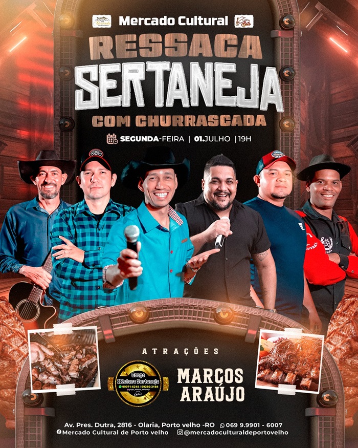 "Hoje vai ter promoções de bebidas, churrascada, drinks especiais e show do duplo na melhor noite de segunda-feira da capital rondoniense", enfatizou o empresário Sinésio Tapajós, permissionário do box Dourado do Madeira, se referindo ao evento musical e gastronômico 'Ressaca Sertaneja', que acontece todas as segundas, a partir das 19h, no Mercado Cultural de Porto Velho.