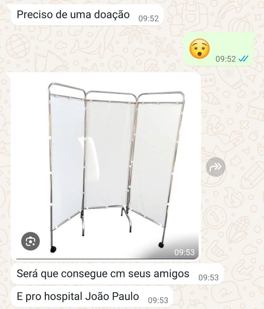 Funcionários iniciam campanha para suprir demanda no hospital, que dispõe de apenas quatro biombos