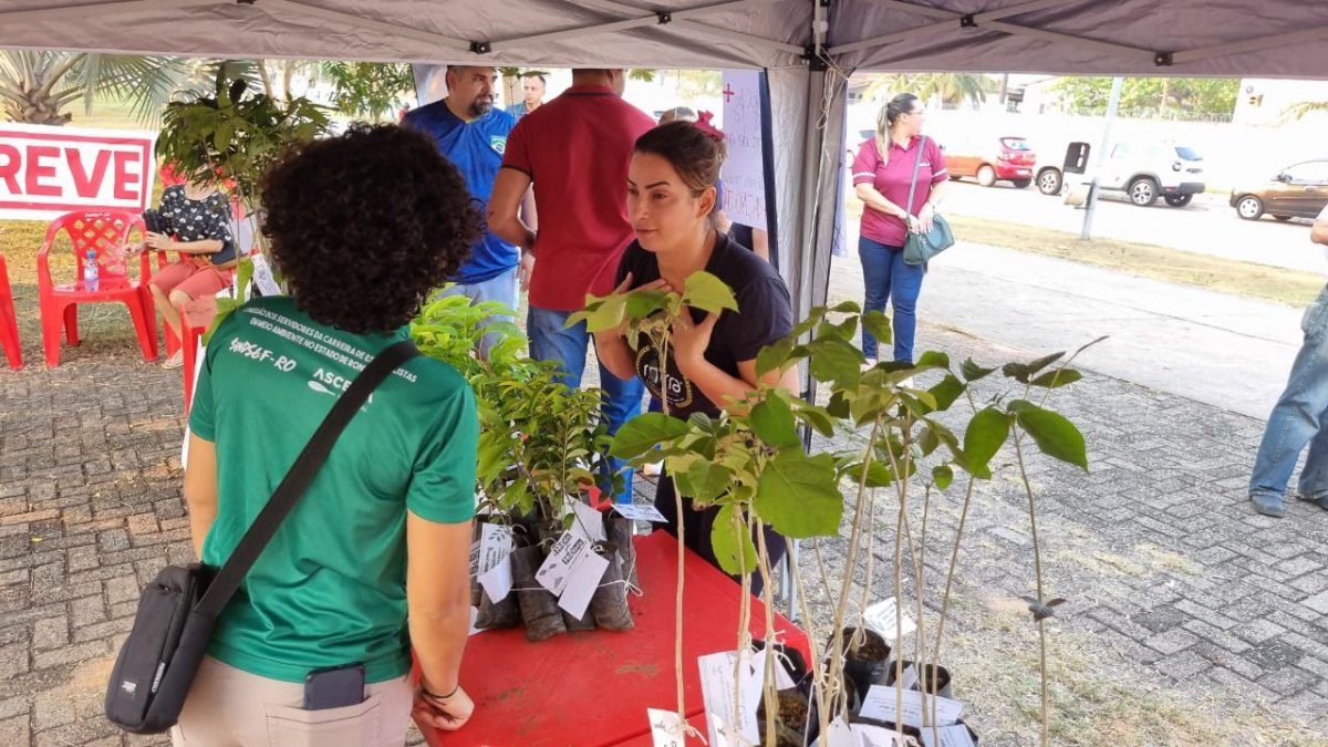 Mais de 100 mudas de plantas, dentre elas ipês, glaviola, cupuaçu e outras, foram distribuídas no ato de mobilização dos servidores da carreira ambiental, em greve há mais de 30 dias.
