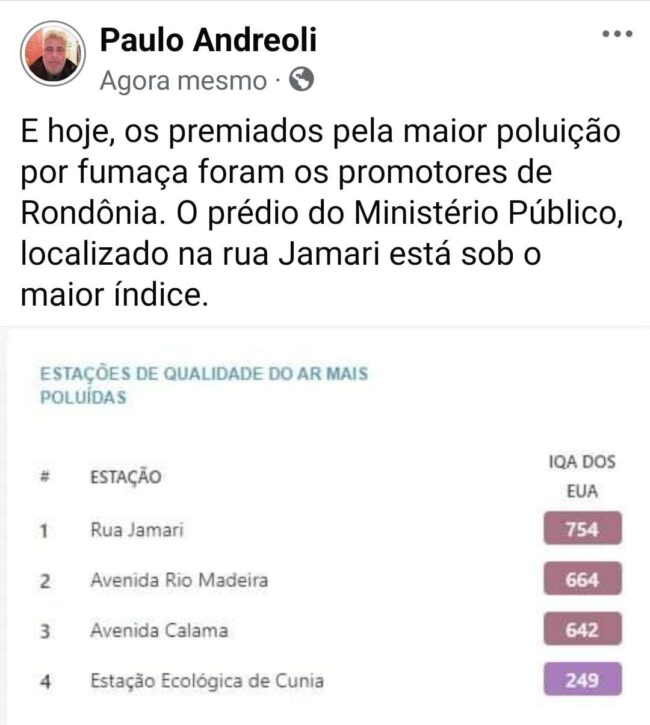 Enquanto isso o céu de Porto Velho está branco, coberto por fumaça resultante das queimadas. Pessoas com problemas respiratórios precisando de tratamento, e a prefeitura impedida de fazer uma campanha para tentar conscientizar a população, incluindo maus fazendeiros.