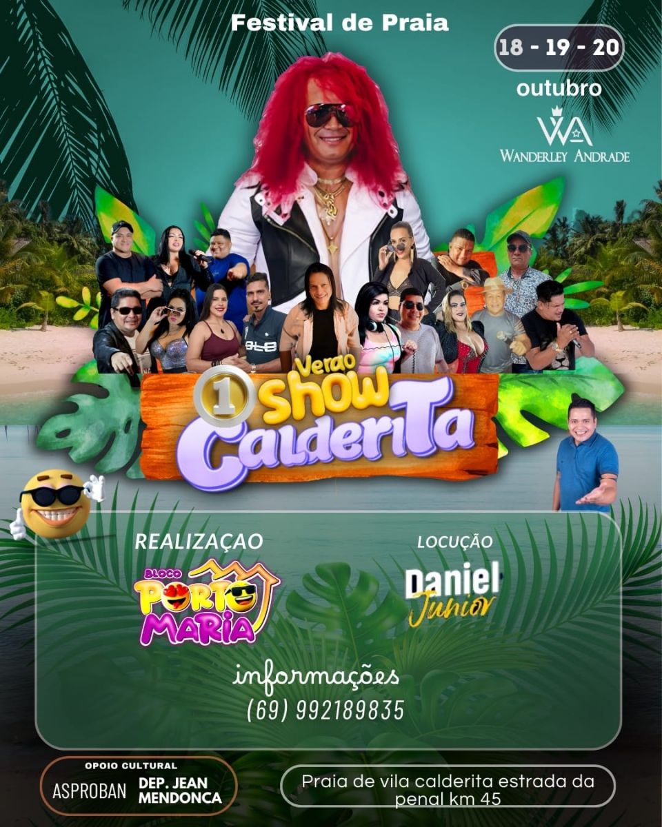 Daniel Júnior pontuou: “Muita gente me ligou perguntando se o Festival tinha sido cancelado. Houve uma desinformação, por que o outro festival de praia realizado pela Prefeitura de Porto Velho foi cancelado por causa da fumaça. É importante frisar - o 1° Festival de Praia de Calderita [realizado pela Porto Maria] está confirmadíssimo.”