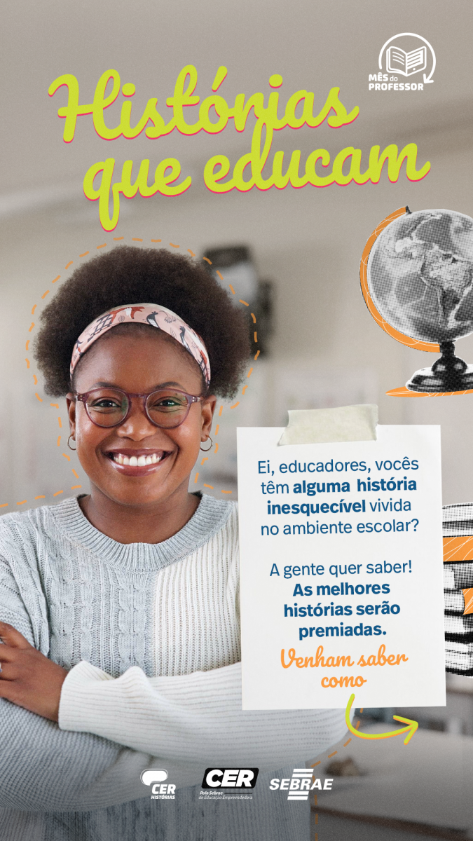Educadores de todas as áreas do conhecimento podem participar da campanha #HistóriasQueEducam. Para isso, basta acessar o site do CER Polo Sebrae de Educação Empreendedora (