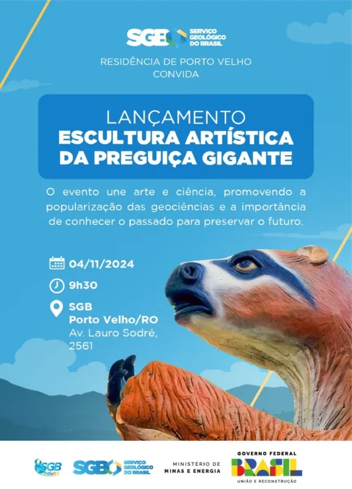 A escultura com quatro metros de altura – o tamanho real das preguiças gigantes – é uma obra do renomado escultor rondoniense Bruno Ferreira é montado em cimento e ferro. Foram oito meses de trabalho desde o início da obra até sua conclusão, este mês.