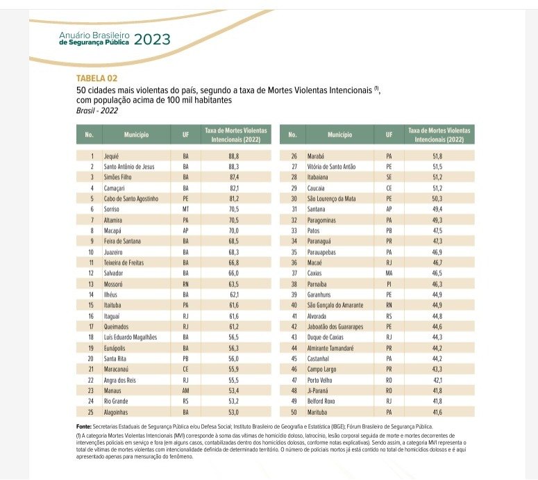 Segundo o Anuário, Porto Velho apresenta um MVI de 42,1 mortes a cada cem mil habitantes, ficando na 47º posição. Já a cidade de Ji-Paraná apresentou um MVI de 41,8 e se posicionou logo atrás de Porto Velho, na 48º posição.