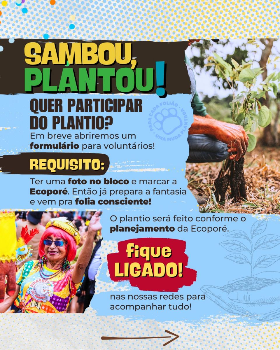 redes sociais e marcar a Ecoporé. Em breve, o projeto vai abrir um formulário para listar voluntários que desejarem fazer parte do plantio.