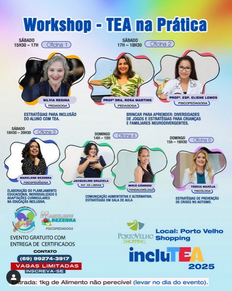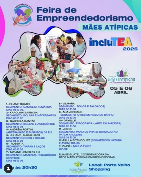 IncluTEA 2025 – "Informação gera empatia, e empatia gera inclusão". O evento contará com roda de conversa com profissionais, bate-papo com autistas adultos, oficinas práticas para manejo de crianças autistas e o workshop "TEA na Prática: Estratégias de Prevenção de Crises no Autismo". Além disso, haverá um espaço Kids e a Rede de Mães Atípicas Empreendedoras estará presente com exposição de produtos. No domingo, acontece a tradicional soltura de balões.