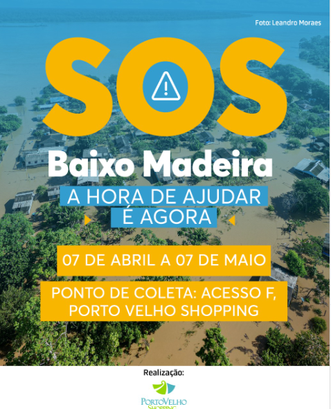 O Porto Velho Shopping entrou no apoio solidário aos ribeirinhos do Rio Madeira que estão sendo muito afetados pelas alagações. A ação se desenvolverá entre 07/04 e 07/05. As doações podem ser entregues no ponto de coleta que fica no Acesso F, do centro de compras. Colabore!