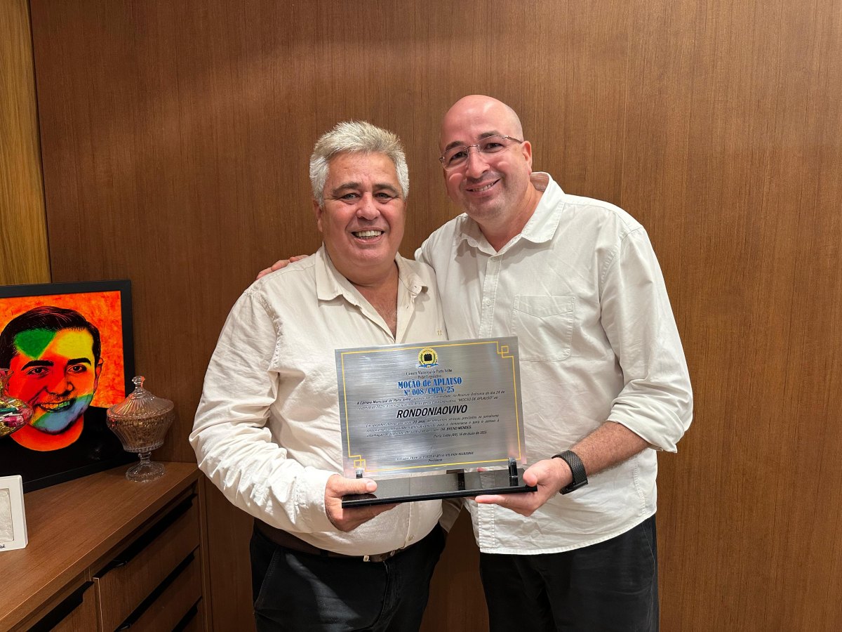 Rondoniaovivo recebeu Moção de Aplausos da Câmara Municipal de Porto Velho, pelos 20 anos de existência, comemorado neste ano de 2025. A homenagem foi proposta pelo vereador Dr. Breno Mendes (Avante) que elogiou o pioneirismo com vanguarda por liderar a comunicação digital e instantânea. A solenidade de entrega aconteceu nesta manhã de sexta-feira (16), no Plenário.